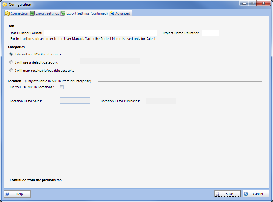 Do you use MYOB Locations? | Enable if you use Locations in you MYOB file. |