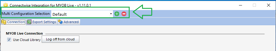Once you have set up your different MYOB configuration settings, each one pointing at the corresponding MYOB file, you can now go back to the main screen. You will find the same MYOB file selector on the main menu bar.